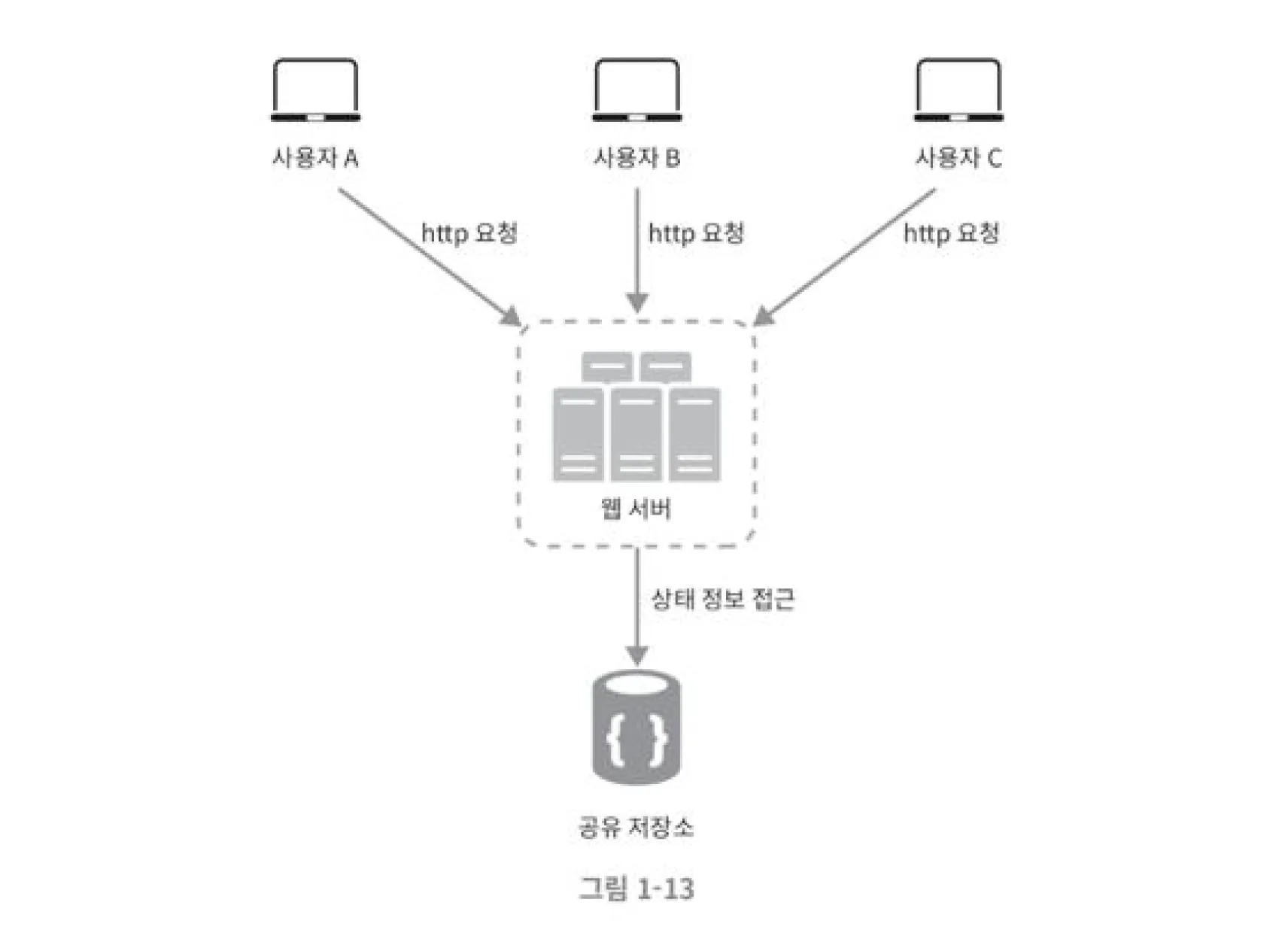 - 상태 정보를 보관하는 서버는 클라이언트 정보가 요청들 사이에 공유되어야 함