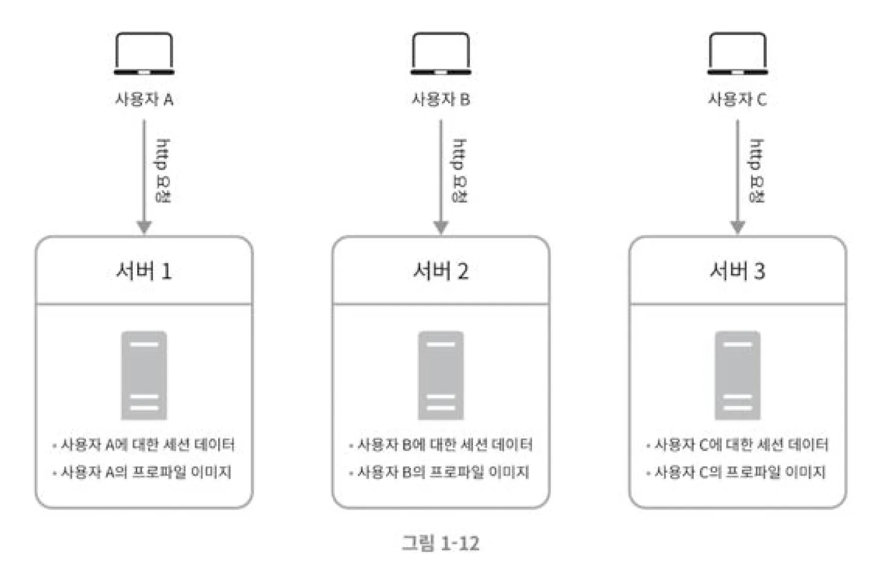 - 같은 클라이언트로부터의 요청은 항상 같은 서버(해당 클라이언트의 정보가 저장되어있는)로 전송되어야 함