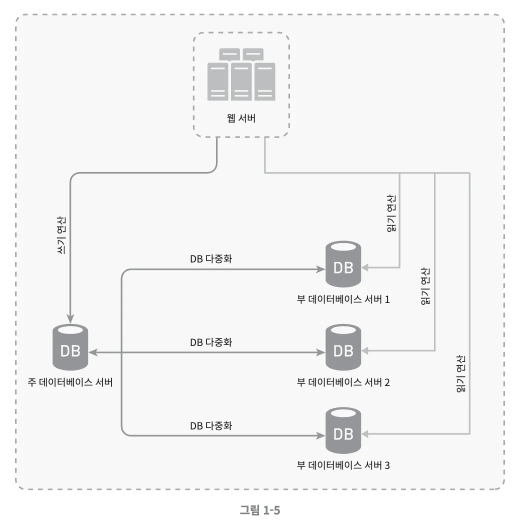 - 웹 서버는 사용자의 데이터를 부 데이터베이스 서버에서 읽음