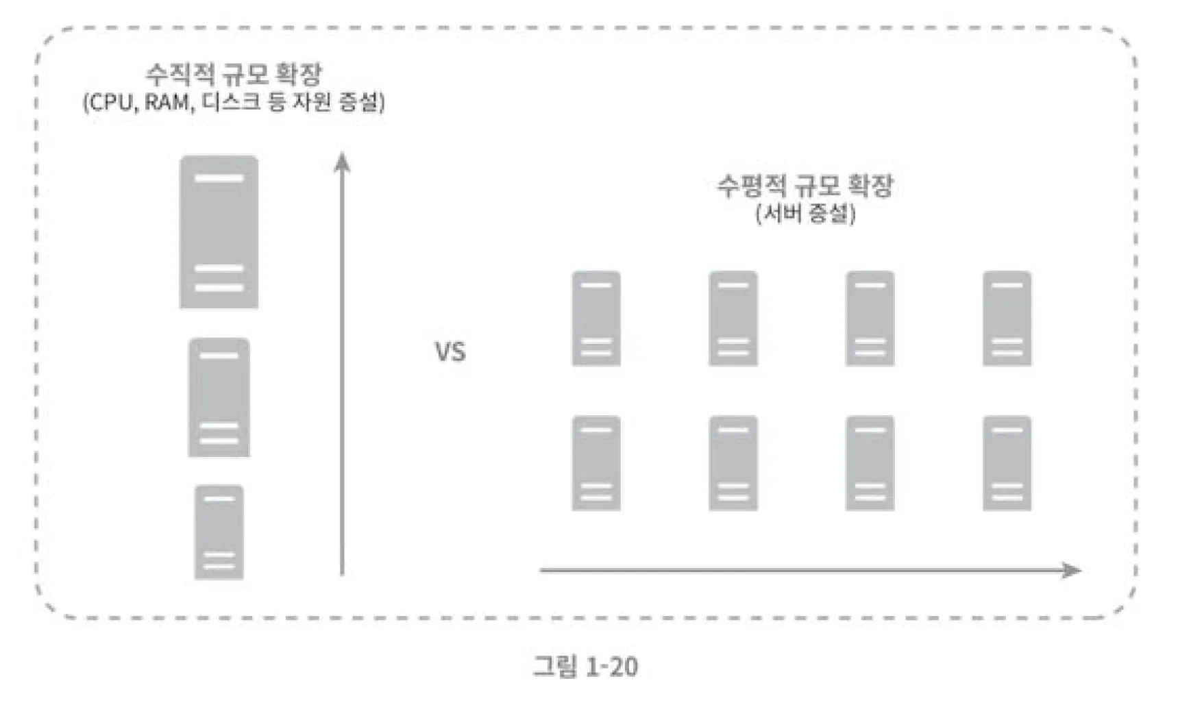 - 기존 서버에 더 많은, 또는 고성능의 자원(CPU, RAM, 디스크 등)을 증설하는 방법