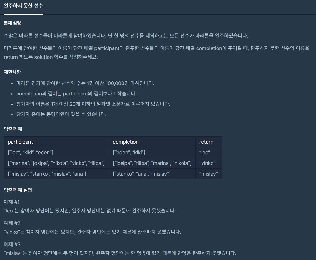 [프로그래머스] 해시 Level 1. 완주하지 못한 선수 (JAVA) 본문
