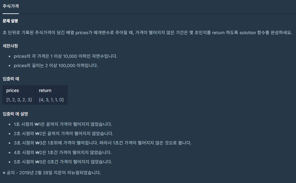 [프로그래머스] 스택/큐Level 2. 주식가격(JAVA) 본문